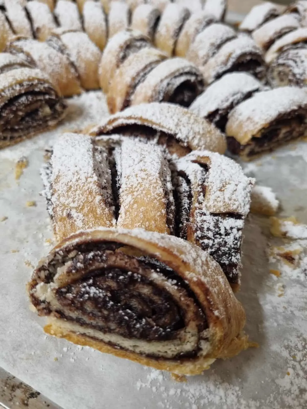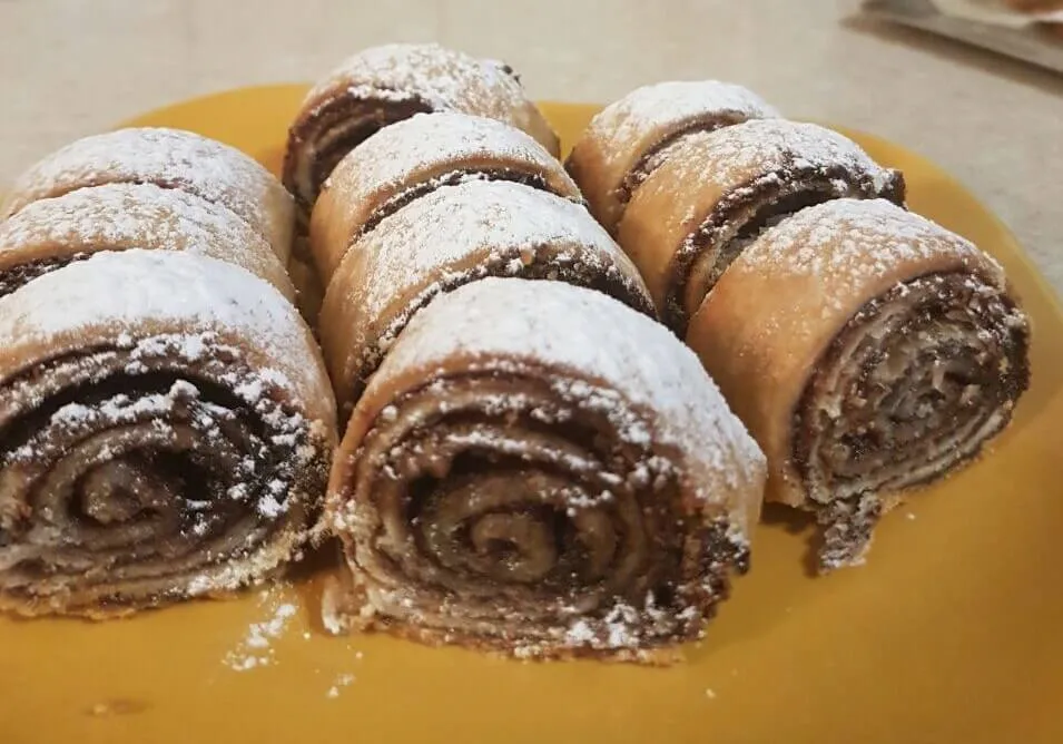 רולדה מבצק פריך על בסיס חמאה, ממולאת בממרח נוטלה, בתוספת קינמון וקוקוס טחון